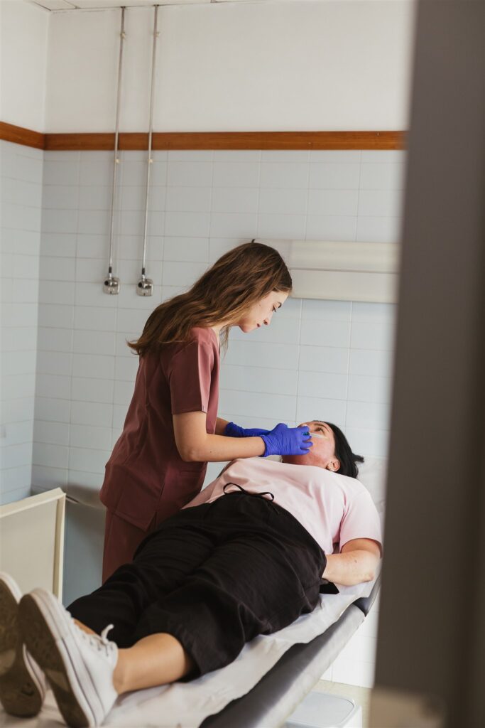 Se limpia y desinfecta cuidadosamente la piel para evitar cualquier riesgo de infección. En algunos casos, se aplica una crema anestésica para minimizar las molestias durante la inyección.