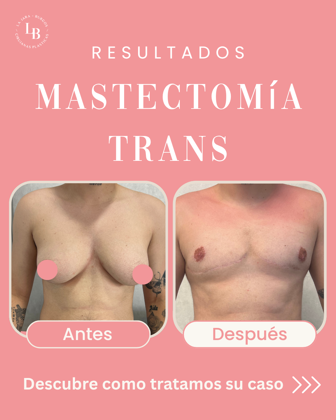 En La Jara Burgos Cirujanas Plásticas comprendemos que la cirugía de masculinización torácica es un paso fundamental en el proceso de afirmación de género. Desde nuestras clínicas en Oviedo (Clínica Asturias) y Gijón (Hospital Begoña), nuestro equipo de cirujanas especializadas te acompaña con rigor médico y cercanía, con el objetivo de lograr un contorno pectoral masculino, natural y en armonía con tu identidad.